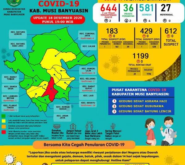 SEKAYU, fornews.co – Ada penambahan 2 kasus positif COVID-19 di Kabupaten Musi Banyuasin pada Jumat 18 Desember 2020.