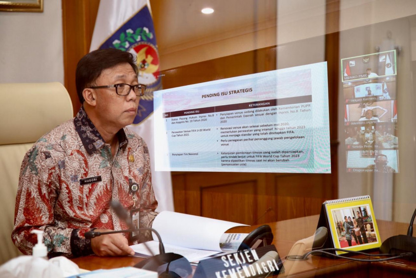“Kami sependapat dengan Menpora, (pembatalan) ini perlu ada semacam surat dari FIFA kepada kita yaitu sebagai dasar penyusunan peraturan secara resmi, ini sebagaimana juga beberapa hari yang lalu ini Menpora ada pemunduran juga, jadi ini nanti sebagai dasar pemerintah pusat tentang penundaan penyelenggaraan FIFA, ini penting,” ujar Sekretaris Jenderal (Sekjen) Kementerian Dalam Negeri (Kemendagri) Muhammad Hudori saat mewakili Mendagri memenuhi Undangan Kemenko PMK pada Rakor Tingkat Menteri tentang Penundaan Penyelenggaraan Piala Dunia U20 2021 secara daring dari Ruang Rapat Sekjen, Jakarta, Senin (28/12).