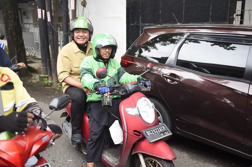 Bukan naik mobil dinas, namun orang nomor satu di Bumi Sriwijaya ini justru naik motor ojek online (onlie) menuju ke depan Gedung DPRD Sumsel. Walau aksi ini dilaksanakan pada hari libur, namun Gubernur Herman Deru bersama Kapolda Sumsel Irjen Pol A Rachmad Wibowo, beserta sejumlah Anggota DPRD Sumsel tetap menemui para buruh tersebut.