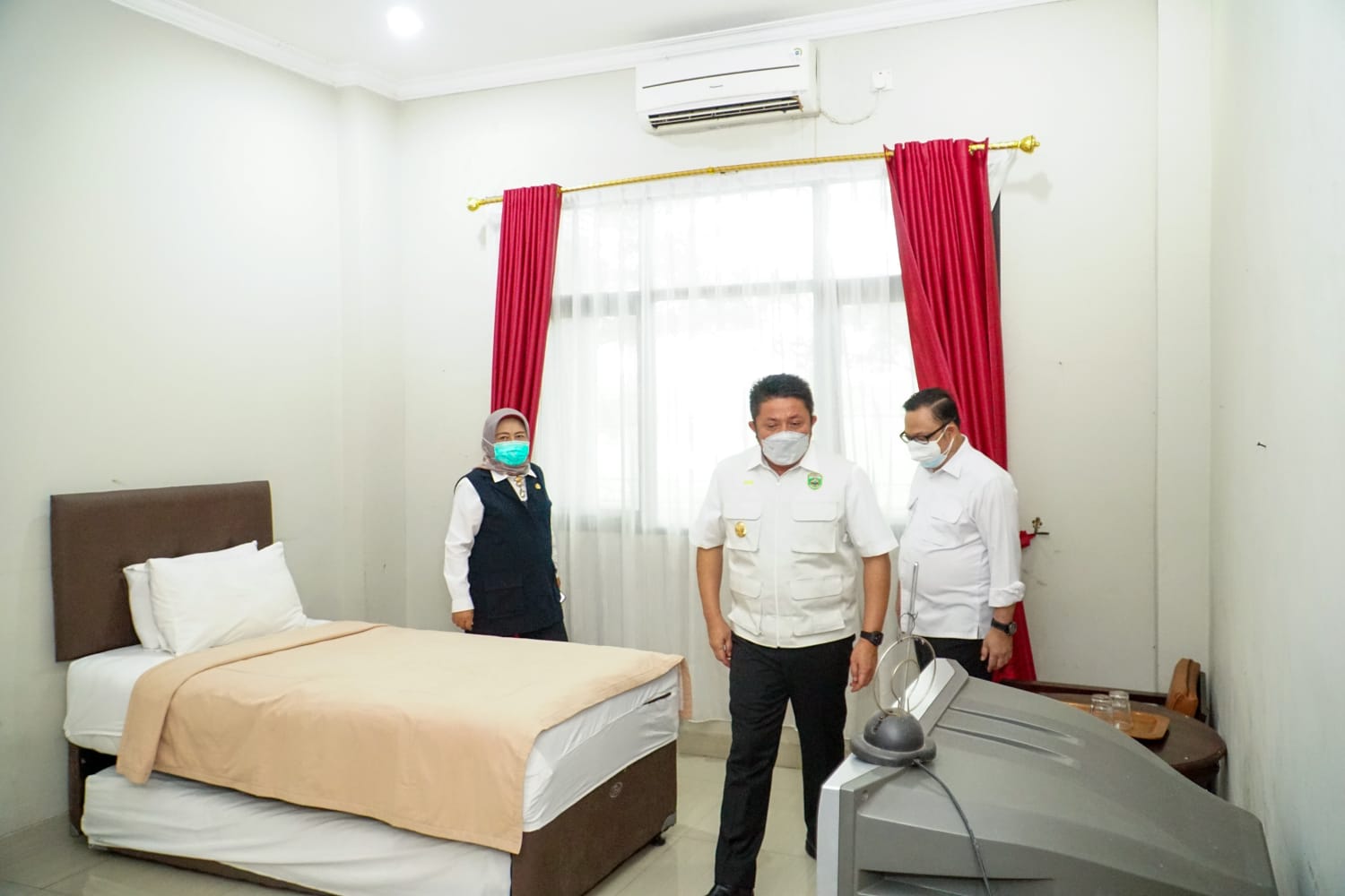 Gubernur Sumsel, Herman Deru didampingi Kepala Dinas Kesehatan Sumsel Dra. Lesty Nurainy, Kepala BPBD Sumsel Iriansyah, Direktur Swarna Dwipa Hotel, Rebo Iskandar, dan Kasat Pol PP Provinsi Sumsel Aris Saputra, melihat meninjau langsung Tower Mekkah, Tower Madinah dan Tower Jeddah, Rabu (14/7/2021) pagi.