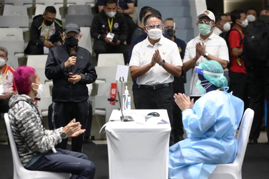 Pelaksanaan vaksinasi insan olahraga ini ditinjau langsung Wakil Presiden RI Ma’ruf Amin. Dalam peninjauannya, Wapres didampingi Menteri Pemuda dan Olahraga Republik Indonesia Zainudin Amali, Menko PMK Muhadjir Effendy, Menteri Kesehatan Budi Gunadi Sadikin, serta Gubernur DKI Jakarta Anies Baswedan.