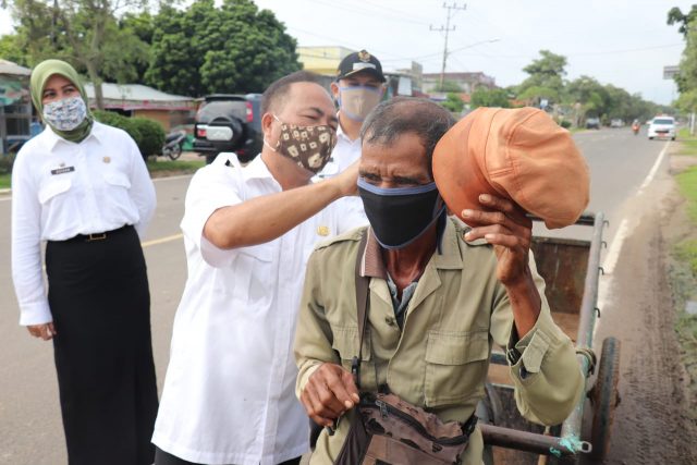 SEKAYU, fornews.co – Gerakan Masker Muba Peduli Melawan Virus Corona ditandai dengan pembagian masker kain gratis kepada warga oleh Pemkab Musi Banyuasin. Seperti yang dilakukan Sekretaris Daerah (Sekda) Muba, H Apriyadi yang turun ke jalan membagikan masker kain kepada warga Muba di Kota Sekayu, Senin (20/04).