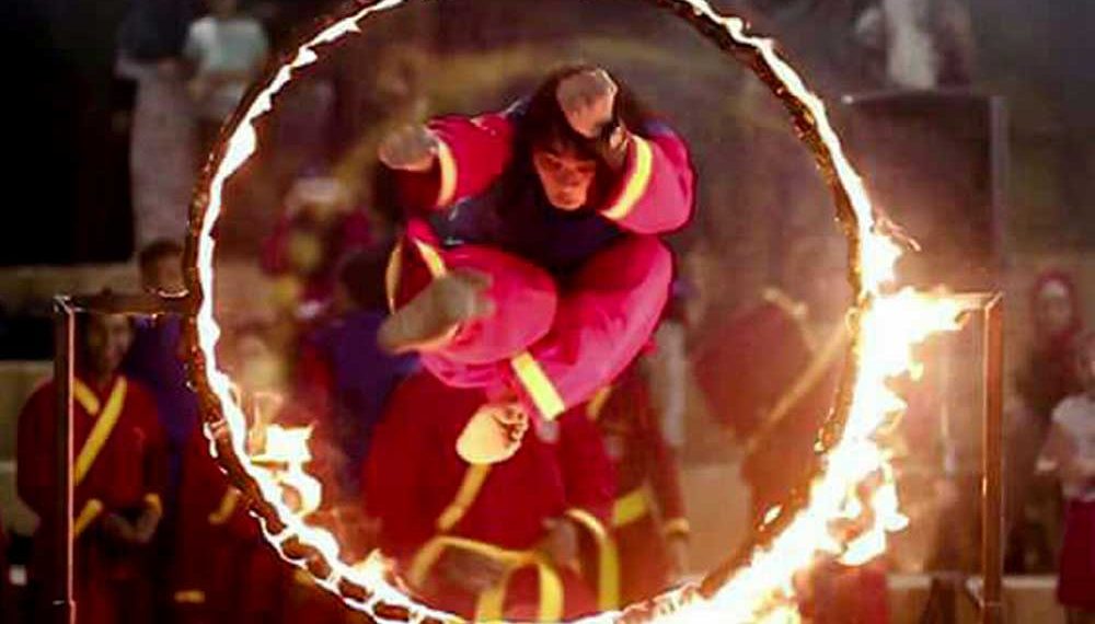 Seperti permainan biasa namun sangat berbahaya. Caranya, ada tiga orang meloncat bergantian. Loncatan dimulai oleh dua orang di pinggir kanan-kiri, disusul oleh orang yang berada di tengah.