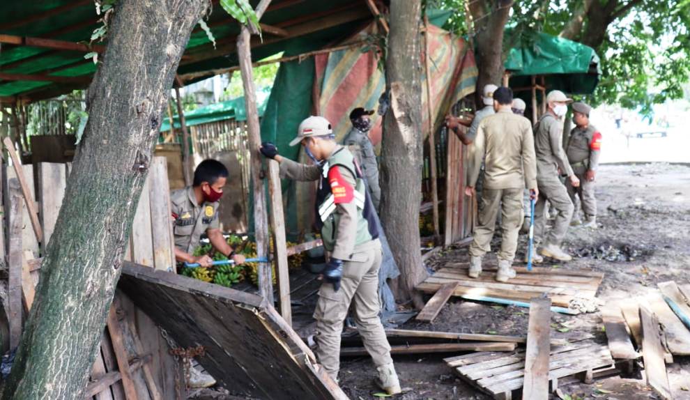“Karena itu kita mengambil tindakan tegas. Alhamdulillah, penertiban tadi berlangsung kondusif. Ada juga tadi yang dengan kesadaran membongkar sendiri,” kata Putra Jaya.