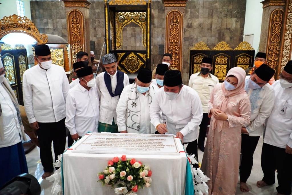 PALEMBANG, fornews.co – Gubernur Sumatra Selatan Herman Deru meresmikan gedung baru Masjid Al-Falah di Jalan Rajawali Kota Palembang yang sudah selesai direnovasi, Selasa (4/5/2021). Peresmian ditandai dengan penandatanganan prasasti oleh Gubernur bersama Ketua Pembina Masjid Al-Falah Kms HA Alim yang disaksikan Ustaz Abdul Somad (UAS) yang hadir memenuhi undangan.