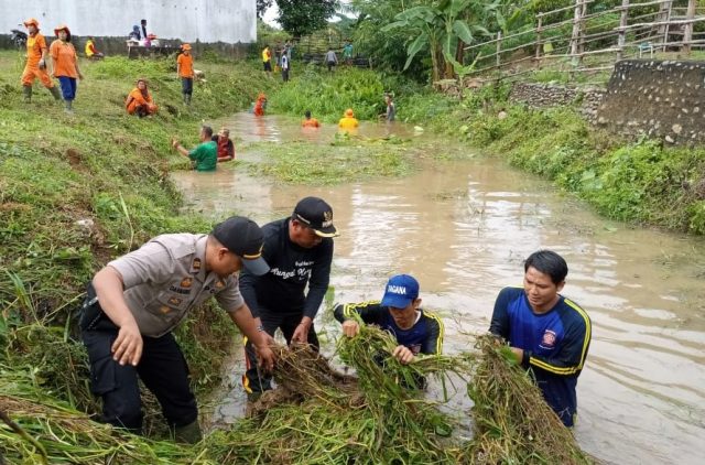 SEKAYU, fornews.co – Puluhan masyarakat, pegawai kecamatan serta anggota Polsek Sungai Keruh turun langsung ke Sungai Tepakan yang membelah Desa Tebing Bulang, Jumat (10/01). Mereka mengangkat sampah maupun rumput yang menghambat aliran air sungai sebagai upaya mengantisipasi bencana banjir di wilayahnya.