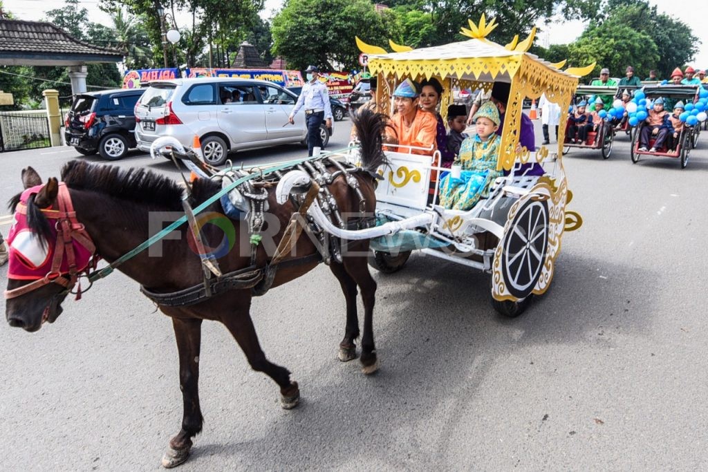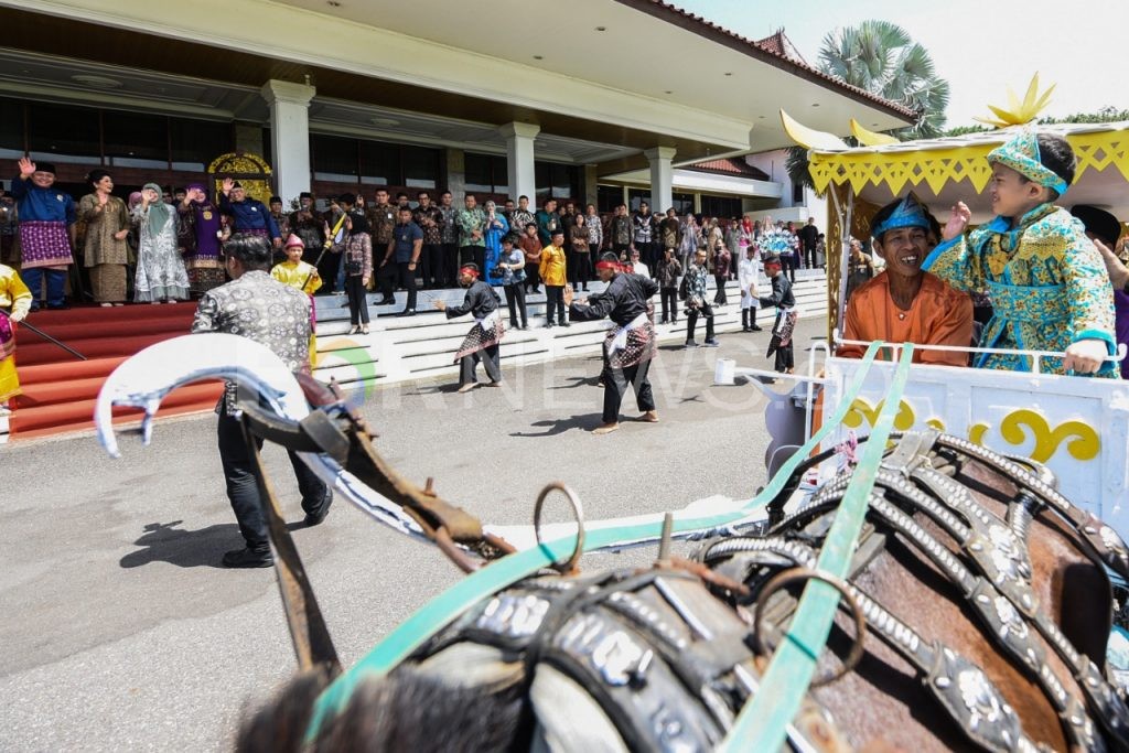 Tak hanya itu beragam kesenian tradisional seperti Tanjidor, Terbangan, dan pencak silat juga turut mengiringi prosesi syukuran yang digelar di Griya Agung, Palembang, Sabtu (22/02/2020). Tradisi arak arakan anak dikhitan yang sering disebut pengantin sunat merupakan budaya masyarakat Sumsel yang harus terus dijaga dan dilestarikan. (matakamera/fornews.co/mushaful imam)