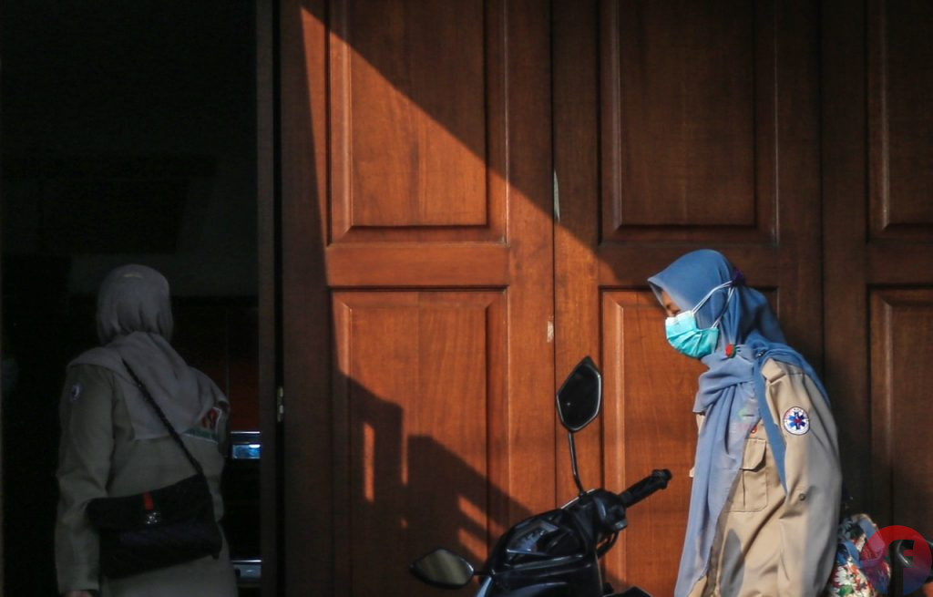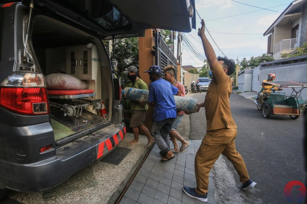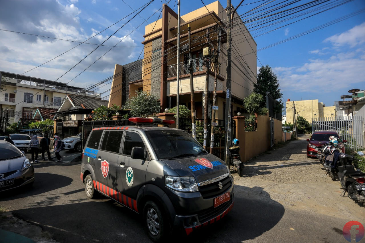 Petugas turun dari mobil ambulans saat kembali datang di kediaman Heryanty di Jalan Tugu Mulyo Palembang, Selasa (3/8/2021). (fornews.co/mushaful imam)Petugas medis memasuki rumah Heryanty di Jalan Tugu Mulyo Palembang, Selasa (3/8/2021). (fornews.co/mushaful imam)Petugas dibantu buruh bangunan membawa tabung oksigen ke dalam rumah Heryanty di Jalan Tugu Mulyo Palembang, Selasa (3/8/2021). (fornews.co/mushaful imam)Petugas menaiki mobil ambulans yang diparkir di garasi usai kunjungan kedua di kediaman Heryanty di Jalan Tugu Mulyo Palembang, Selasa (3/8/2021). (fornews.co/mushaful imam)