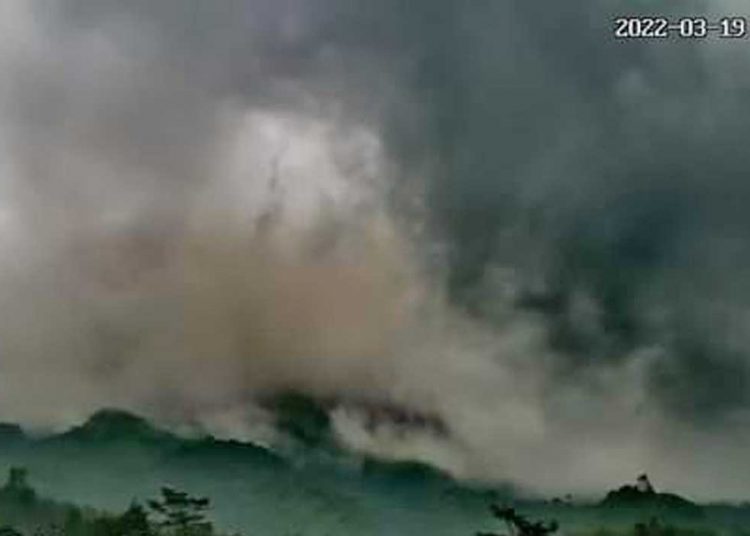 YOGYA, fornews.co—Gunung Merapi terpantau mengeluarkan awan panas guguran pada Sabtu (19/3/2022) sore.