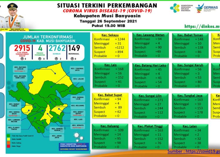 “Bertambah 2 kasus sembuh dan nihil kasus positif per 26 September 2021,” ungkap Jubir Gugus Tugas Penanganan COVID-19 Muba, Herryandi Sinulingga AP.