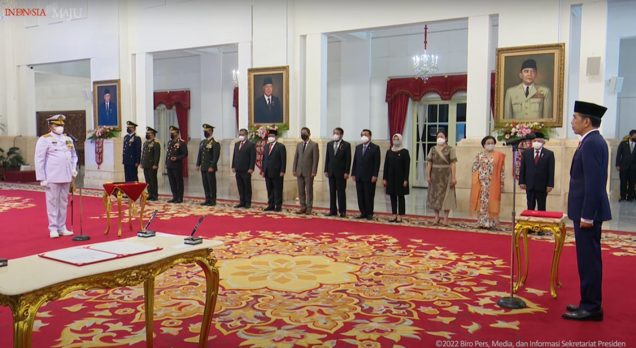 JAKARTA, iNewspalembang.id – Presiden RI Joko Widodo (Jokowi) resmi melantik dan sumpah jabatan Laksamana Yudo Margono, sebagai Panglima TNI di Istana Negara, Jakarta, Senin (19/12/2022).