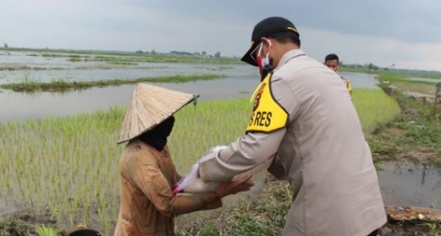 KAYUAGUNG, fornews.co – Jajaran pejabat tinggi Polres Ogan Komering Ilir (OKI), Polda Sumatera Selatan kembali menyalurkan bantuan sosial kepada masyarat di tengah Pandemi Corona Virus Disease 2019 (COVID-19), Senin (15/06). Kali ini, yang menjadi sasaran Kapolres OKI, AKBP Alamsyah Palupessy didampingi jajarannya adalah masyarakat yang tinggal di pinggiran Tol Kayuagung.