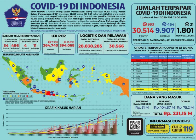 Data Kasus Positif COVID-19 di Indonesia 6 Juni 2020