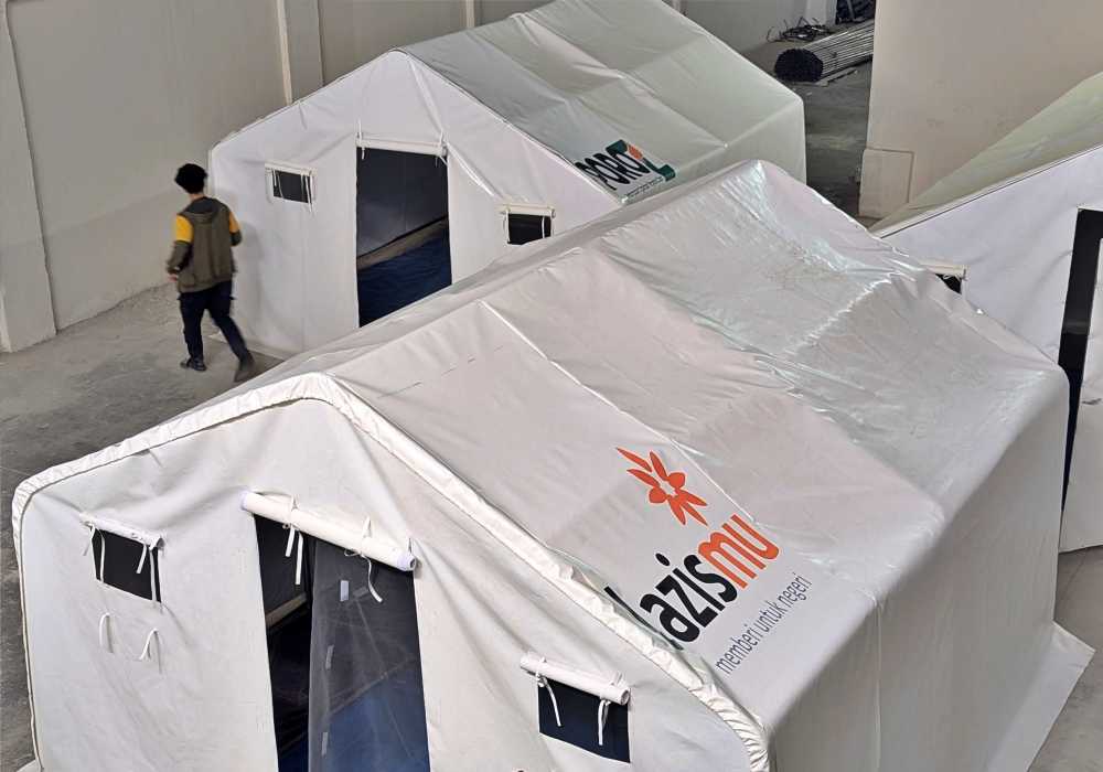 Proses pembuatan tenda hunian sementara itu berada di Ismailiyah, Mesir, sebelum akhirnya dikirim ke Gaza.