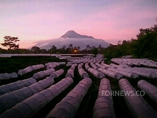 Hamparan lahan pertanian belatar belakang Gunung Merapi menjadi daya tarik tersendiri.