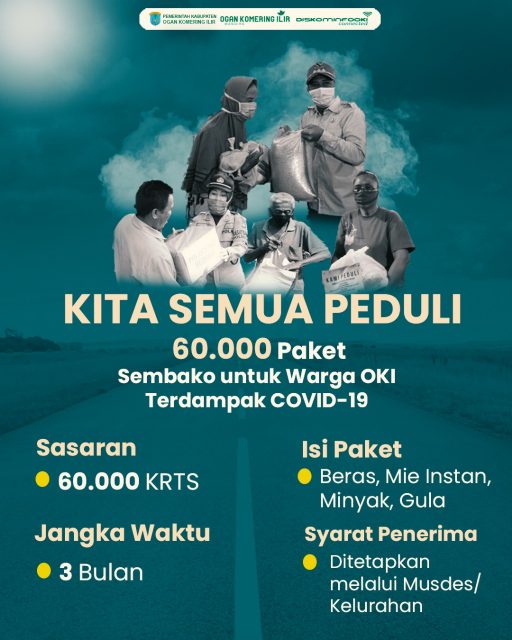 KAYUAGUNG, fornews.co – Pemerintah Kabupaten (Pemkab) Ogan Komering Ilir (OKI) membagikan 60.000 paket sembako kepada Keluarga Rumah Tangga Sasaran (KRTS) yang terdampak wabah Corona Virus Disease 2019 (COVID-19).