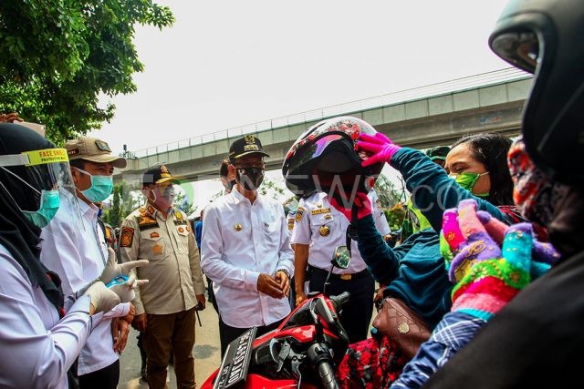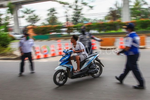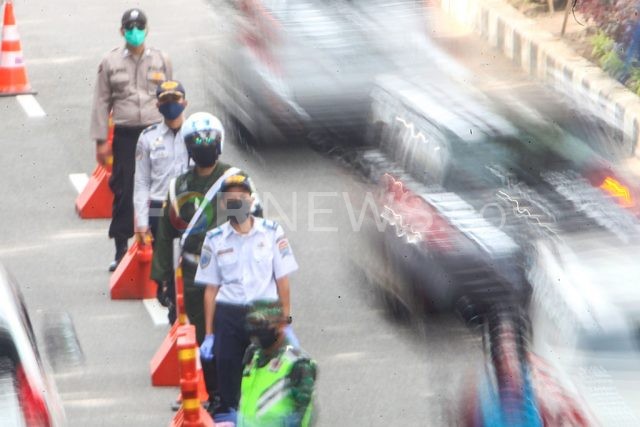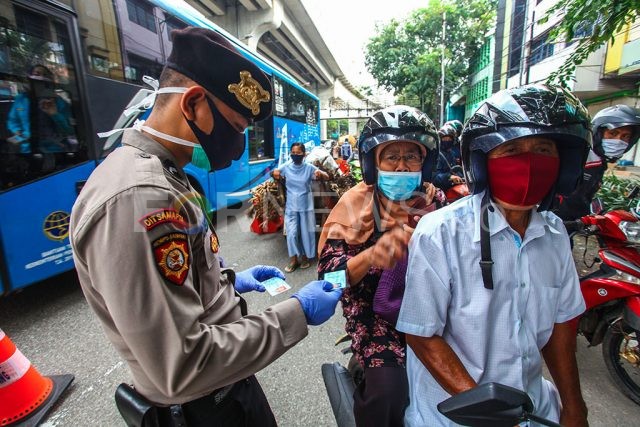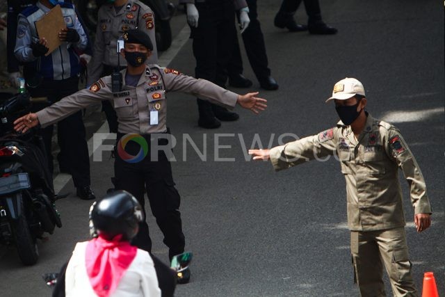 Pemeriksaan protokoler kesehatan dan kelengkapan seperti mengunakan masker, jumlah penumpang mobil, dan syarat berboncengan pada sepeda motor dilakukan di check point yang ada di dalam kota maupun daerah perbatasan, Selasa (26/05/2020). (matakamera/fornews.co/mushaful imam)