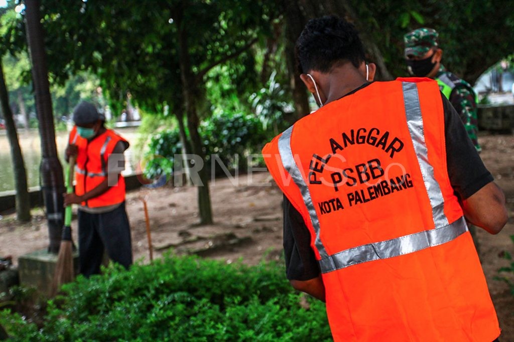 Pembatasan Sosial Berskala Besar (PSBB) di Kota Palembang sudah mulai menerapkan sanksi bagi para pelanggarnya. Para pelanggar yang terjaring tidak mengunakan masker akan diberikan sanksi bersih-bersih di Kambang Iwak dengan mengunakan rompi khusus.