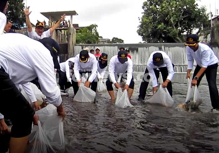 Usai pelantikan ratusan pejabat struktural, Pemerintah Kota Jogja menggelar aksi pelepasan ikan sebagai bentuk kepedulian terhadap pelestarian lingkungan.