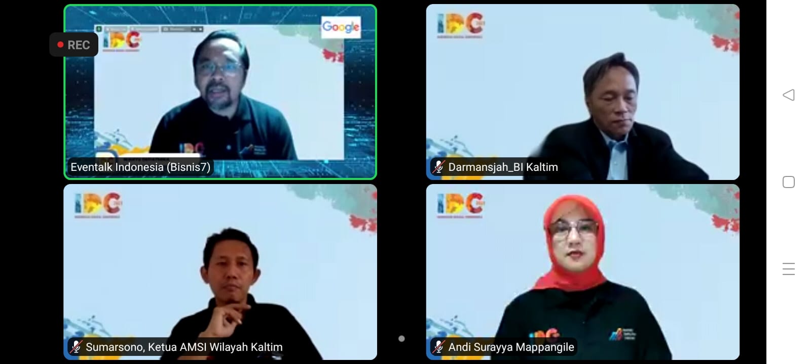 Sesi webinar Kaltim ini mendapat dukungan dari mitra kampus yaitu Universitas Mulawarman, Universitas Islam Negeri Samarinda, Universitas 17 Agustus Samarinda, Universitas Mulia (Samarinda), Universitas Balikpapan, Sekolah Tinggi Ilmu Ekonomi Balikpapan, dan Politeknik Negeri Balikpapan. IDC AMSI 2021 mendapat dukungan sponsor dari Google, BNI, Astra, Bank Raya, PT. PLN Persero, Pertamina, bank bjb, PT. Bank Central Asia. Tbk, PT. Bank Pembangunan Daerah Bali, Bank Jatim, Pemerintah Kabupaten Bojonegoro, Bali Mall, Kedai Tiga Nyonya, MS Glow, dan Bank Kaltimtara (yan)