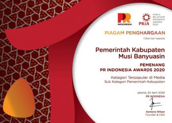 Sabet PR Indonesia Awards 2020, Pemkab Muba Dua Tahun Berturut Terpopuler di Media