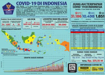 JAKARTA, fornews.co - Penambahan kasus positif COVID-19 di Indonesia Minggu 7 Juni 2020 hingga pukul 12.00 WIB sebanyak 672. ...