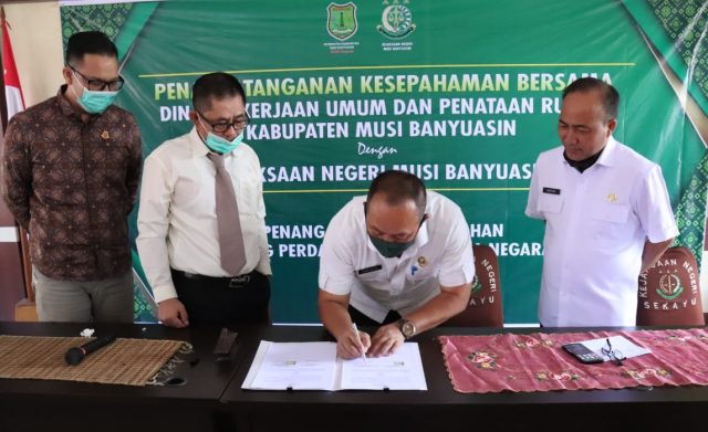 “MoU dengan Kejari Muba ini menindaklanjuti hasil pemeriksaan BPK terkait LHP 2018 dan 2019 dengan total Rp17.781.681.553,06 yang terdiri dari Rp2.094.720.934 (lebih bayar) tahun 2018 dan Rp15.686.960.618 tahun 2019,” ujar Kepala Dinas PUPR Kabupaten Muba, Herman Mayori, Selasa (16/06).