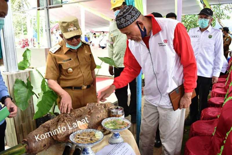 Hadir dalam penanaman perdana talas beneng ini Kepala Dinas Ketahanan Pangan Provinsi Sumsel Raden Bambang Pramono, Ketua DPD Pertabenindo Sumsel Kustanto, pimpinan Bank Sumsel Babel Lahat, Kepala OPD Pemkab Lahat, jajaran Polsek, jajaran Koramil, dan kepala desa. (aha)