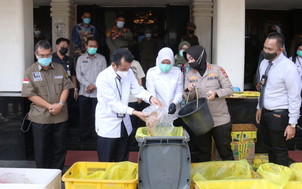 PALEMBANG, fornews.co – Berbagai jenis bahan pangan mengandung zat berbahaya yang didapatkan dari Sidak selama Ramadan 1442H dimusnahkan di halaman kantor Wali Kota Palembang, Kamis (6/5/2021).